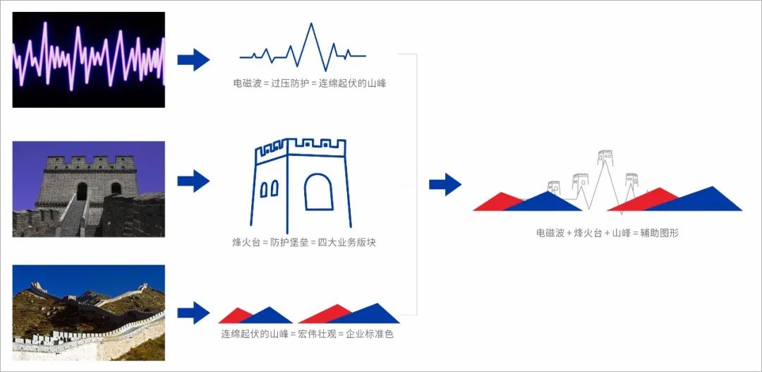 輔助圖形以長城為主元素+電磁波形+山峰組合而成,形成一套完善的防御系統(tǒng),堅不可摧的長城完美詮釋檳城電子的過壓防護理念和愿景,為檳城電子的產(chǎn)品代言。